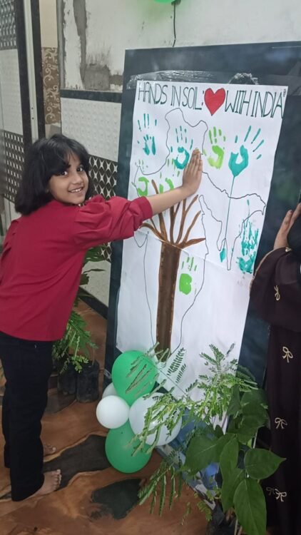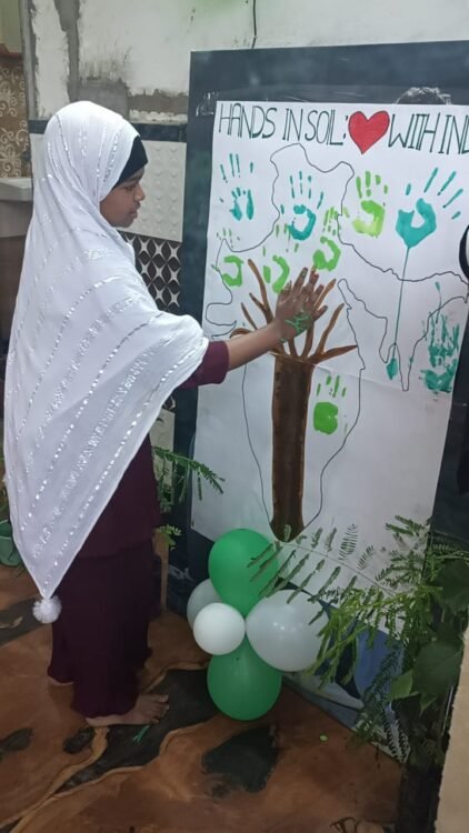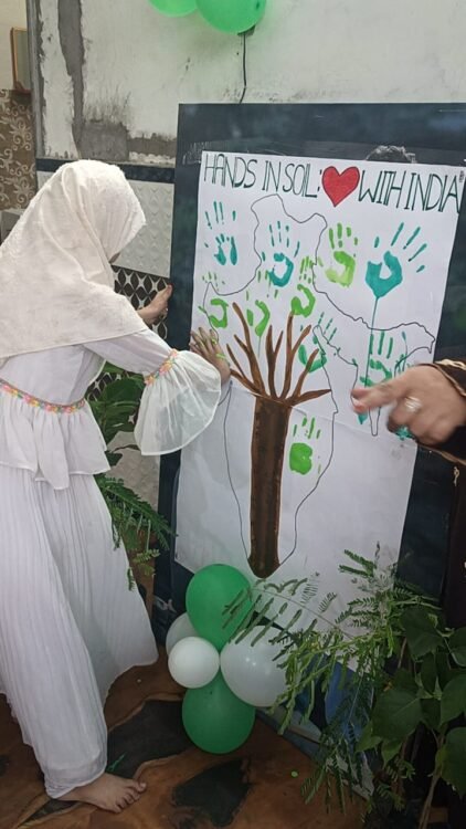 कार्यक्रम के अंत में वाइज़ा खान ने सभी अतिथियों, प्रतिभागियों, शिक्षकों और विशेष रूप से नन्हे बच्चों का धन्यवाद अदा किया। *सभी बच्चों ने अपने हाथों को मिट्टी वह हरे रंग में भिगोकर भारत के मानचित्र पर अपने हाथ का निशाना बनाकर यह संकल्प लिया पर्यावरण की रक्षा करेंगे और ज्यादा से ज्यादा पौधे लगाएंगे* यह अभियान देश के हर कोने में सफलतापूर्वक चलाया जाएगा। नन्हे-मुन्नों की मेहनत ने इस कार्यक्रम को यादगार बना दिया।